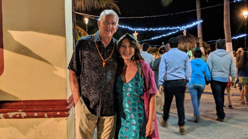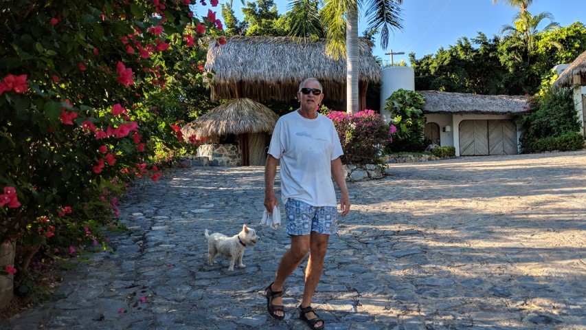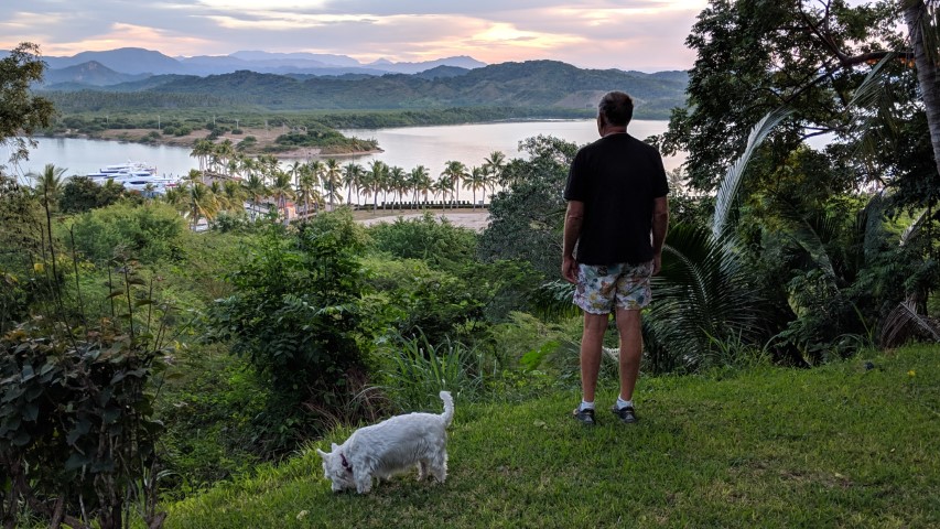 We decided to move into the marina in nearby Ixtapa. We later learned that dogs were allowed on Playa Principal beach in Zihua. At the marina, we met Ladimer, who divided his time between his boat and his home on Lake Patzcuaro. He had boat guests visiting from the east coast, Pablo and Wendy. Ladimer invited us for cocktails on his boat, and we had a great time. We all took a trip to Mahajua, a beach town nearby. Lunch was on the beach at Todo al Mar where we feasted on a seafood platter, followed by terrific margaritas at Jardin del Eden in Troncones. We were lucky to have met them; we enjoyed their company. We hope our paths will cross in the future.