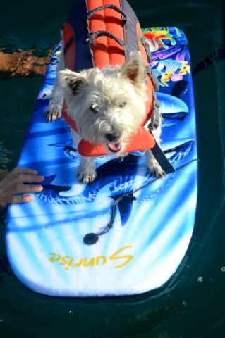 Our next anchorage was Ensenada Carrizal, a deserted island. We had bought a child's boogie board for Sushi, and she seemed comfortable standing on it in the water. Surfer Sushi! We had great snorkeling here and swimming in the warm sea.