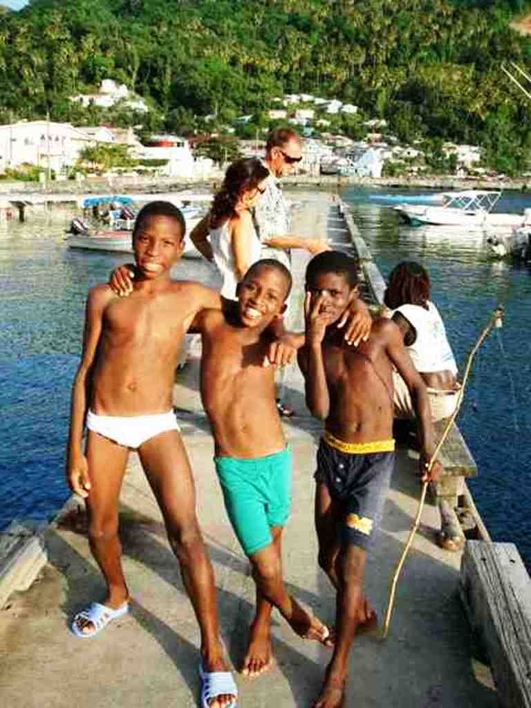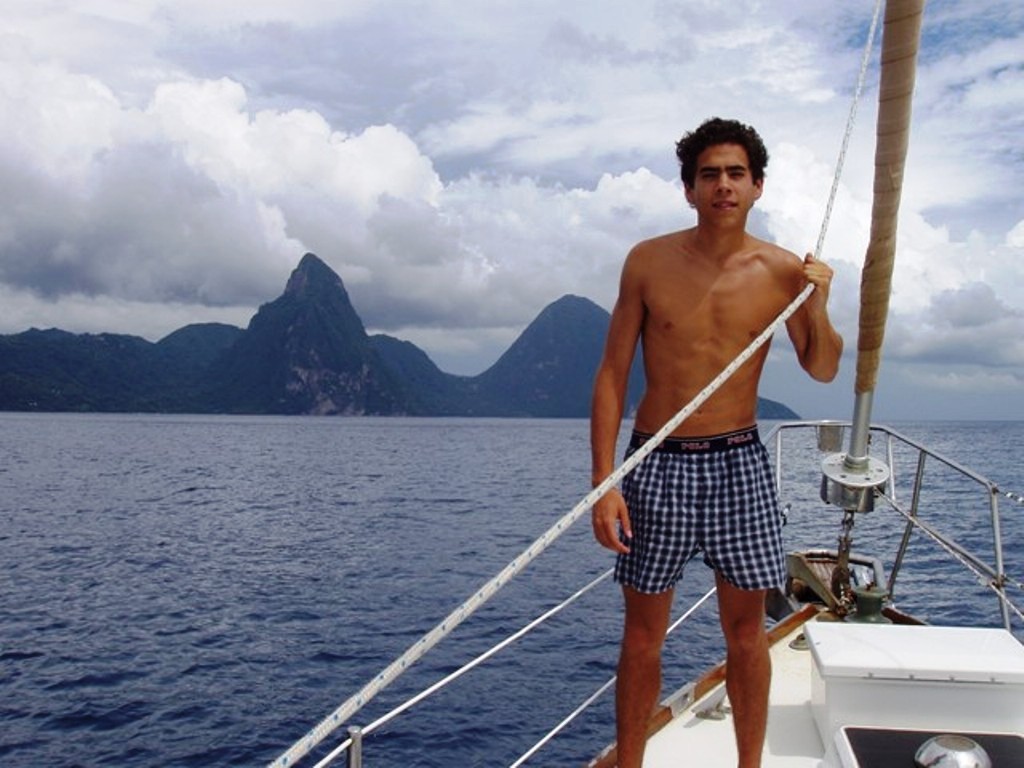 June 20, 2005 St. Lucia We checked in at Rodney Bay, which is quite large. There aren't many boats around now, due to the time of year...many boaters are already tucked in for hurricane season. There's plenty of services available here. You will find a small, beautiful bay at Marigot Bay, along with good restaurants. We sailed down toward Soufriere and saw the two pitons, which are breathtaking. It almost feels you are in Tahiti, with those two tall mountains just off the beach. Armand met a local to take him up to the top of both pitons, on separate days. There's no trail, and he said it was tougher than Boiling Lake! His new friend took him to his family farm and treated him to some rasta fare. We rented a car and toured the island which is quite lush. Between the two pitons, there is a fantastic restaurant, Dasheene, where we celebrated our 11th wedding anniversary. The view is spectacular. Our friends, Phil and Jan, showed up and we had a nice visit before they headed south the next day. We'd love to revisit this island again one day. Sadly, Armand departed for home on June 30, one day before his 19th birthday. We will miss him.