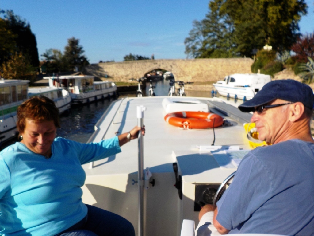 On our second day in Capestang, we met Jim and Chris on our boat, a steel hulled barge named "Lewarne" which Jim had booked with France Afloat. We were happy to have a steel-hulled boat as we were sure to do some bumping during our trip.