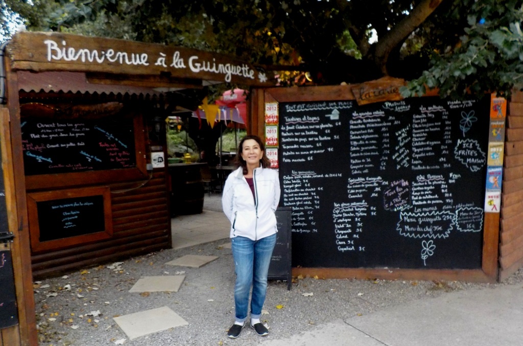 We had the best meal of our entire trip at the village restaurant, La Guinguette. They barbecued the meats on an outdoor grill. The grill was heated by roots of the grapevine. Absolument delicieux! Jim and Chris enjoyed their lamb chops.