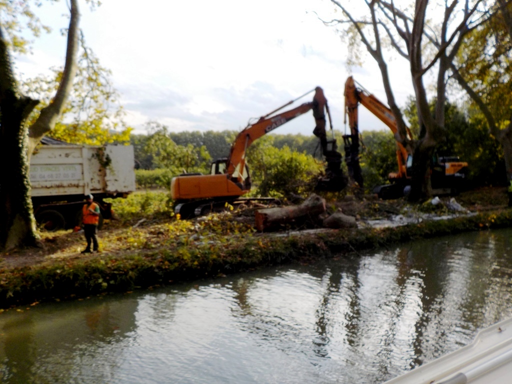 Since 2006, more than 15,000 trees have been cut along the canal due to a fungus that has been killing the plane trees that line the canal. We noticed workers removing trees during our trip. These trees were planted in the 1830s to strengthen the canal banks but to also provide shade. A variety of trees are being planted to replace them, including pine, poplar and oak. The majority of the funds to plant these trees come from public donations.