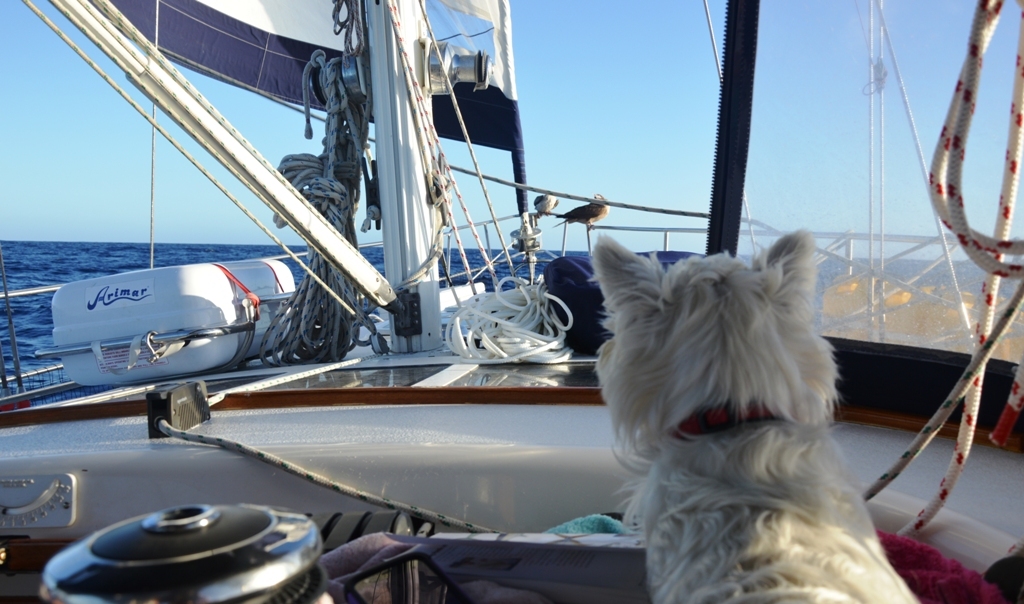 It will be a 7 - 8 day passage to La Paz, if we average 5 to 6 knots per hour. The weather offshore was cold and conditions predicted were 7 to 12 knot wind. Sushi was apprehensive, since it was her first sail, as well as ours on this boat.
