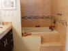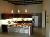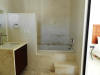 We hired a local contractor to do the work. Unfortunately, the workmanship was inferior, and we had to fire the contractor and redo much of the work. A painful experience, and much more expensive than we had planned. It is not an experience we want to repeat! It's taken us 10 months to finish the work. We wanted to keep the home minimalistic: easy living and easy cleaning, as well as tropical due to the weather in Merida. Some of the work we did: enlarge the pool (adding approx. 20 ft.) to make a 45' lap pool, new roof, tile throughout the home, new kitchen, new bathrooms (in the master bath we removed a shower, moved the toilet and added a double sink vanity....the shower became an outdoor shower that Pat built), add a water heater, remove existing trees in the yard (there must have been over 100 weed trees!) and plant a garden, install yard automatic watering system, build a stone walkway throughout garden, garden wood and concrete benches and concrete shed for garden tools. Here are photos of the interior house: