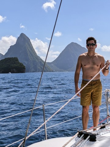 We've been staying at Rodney Bay marina in St. Lucia for 6 days, preparing the boat for our trip. The day after their arrival, we sailed south to the Pitons to swim and enjoy the views for the day. Off we go!