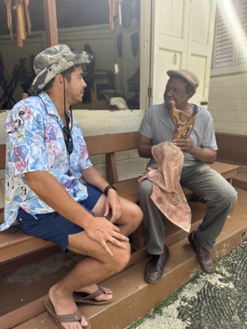 Eudovic Art Studio was our next stop. Vincent Eudovic is a revered sculptor of wood, and his art is internationally renowned. His woodwork and carvings made from local woods are one of a kind. The main wood he uses is Laurier Cannelle, now extinct on the island, but also uses old stumps and roots found in the forest. Other woods include, mahogany, teak, cedar and Laurier Mabouey. Natsuki and Armand bought a beautiful wood sculpture.
