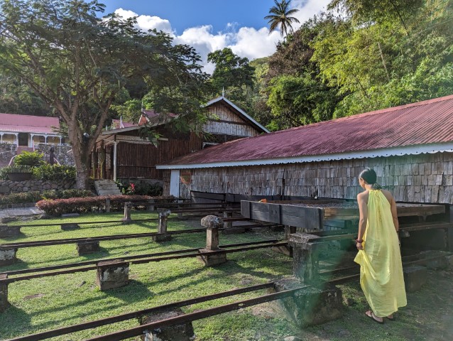 After checking out of our hotel, we drove Armand and Natsuki to the airport. En route, we stopped for a walk at Balenbouch Estate, a former sugar producing plantation from the 1700's to the 1930's. Since 1964, the plantation has been owned and managed by the Lawaetz family, who converted the property into an eco guest house, organic farm and retreat center. We walked among the ruins and to a beach on the property.