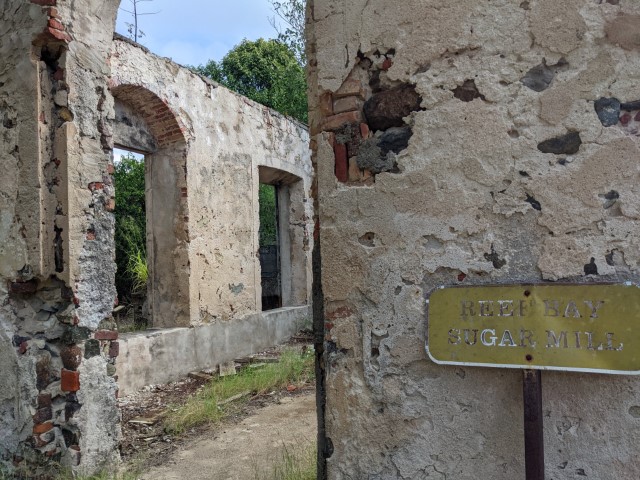 There's a trail from the small beach which leads to Murphy's Great House, the former home of James Murphy who was a merchant, shipowner and slave trader. He bought Watermelon Bay in 1796 and renamed it Leinster Bay. He bought more land and planted sugar cane, where he processed it into sugar at nearby Annaberg Sugar Plantation which he built. We visited the ruins of the house from where you have beautiful views of the islands of St. John and the BVI.